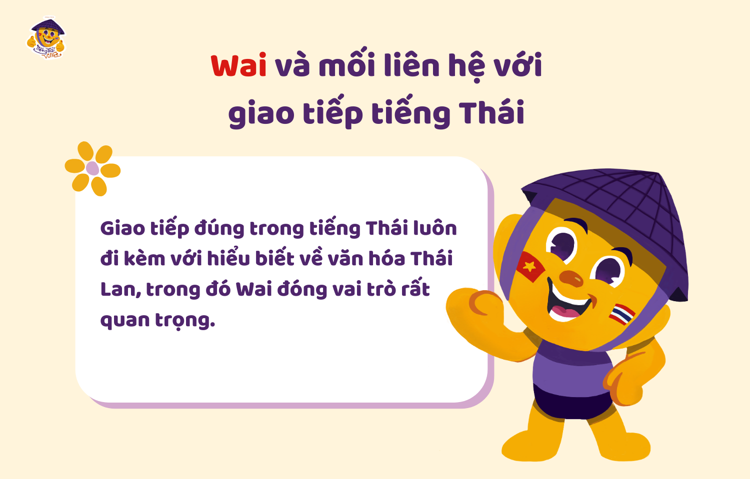Học tiếng Thái không chỉ dừng lại ở từ vựng hay ngữ pháp. Trên thực tế, giao tiếp đúng trong tiếng Thái luôn đi kèm với hiểu biết về văn hóa Thái Lan, trong đó Wai đóng vai trò rất quan trọng.